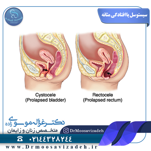 کف لگن از ماهیچه ها ، رباط ها و بافت های همبند تشکیل شده است که مثانه و سایر ارگان های لگن را نگه داری و پشتیبانی می کند. اتصالات بین اندام لگن و رباط ها می تواند به مرور زمان و در نتیجه تروما ناشی از زایمان ضعیف شود. هنگامی که این اتفاق می افتد ، مثانه می تواند پایین تر از حد نرمال بلغزد و به داخل واژن (پرولاپس قدامی) برود.